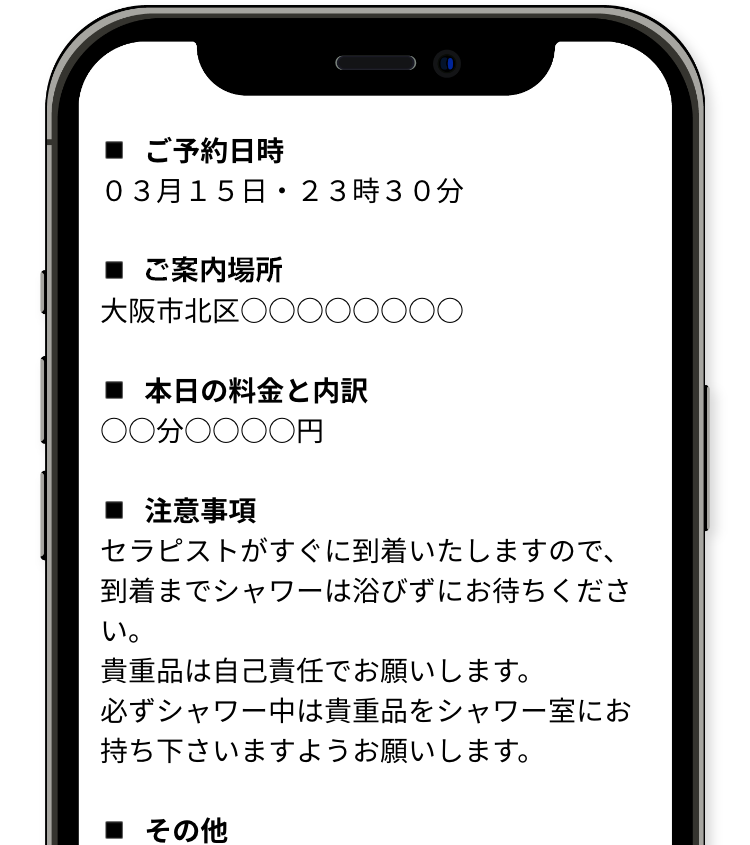 「セラピスト」「ご利⽤コース」「ご予約時間」